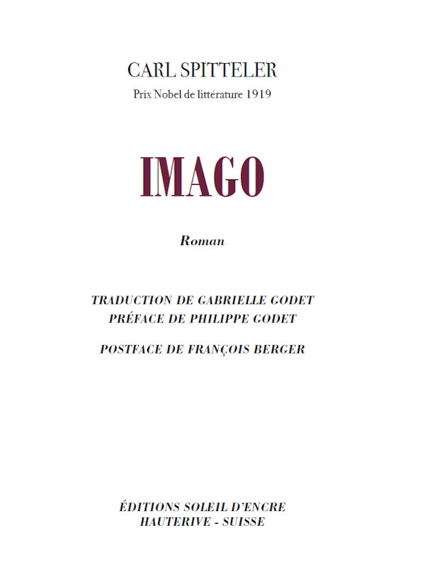 Imago, paru en 1906, passionna Freud qui considérait Spitteler comme un de nos grands poètes contemporains. Le père de la psychanalyse n’était pas le seul (Jung, Nietzsche, Walter Benjamin, Romain Rolland). Avec l’accord de l’écrivain, il donna le titre de son livre à sa première revue. Si ce roman appartient à l’histoire de la psychanalyse, il tient avant tout une place importante dans l’histoire de la littérature fidèle à la tradition allemande où règne la femme interdite. Si la description des émois intenses de l’amour vécu par Victor demeure centrale et magistralement orchestrée, Spitteler ne se prive pas, à travers la peinture de ce village suisse du début du vingtième siècle, de lancer ses piques : Les gens polis sont tous plus ou moins hypocrites (…) Lui un génie ? Certes, un de ces milliers de génies avortés comme chaque famille en a un en réserve (…) Les qualités personnelles ne sont pas des armes à longue portée.